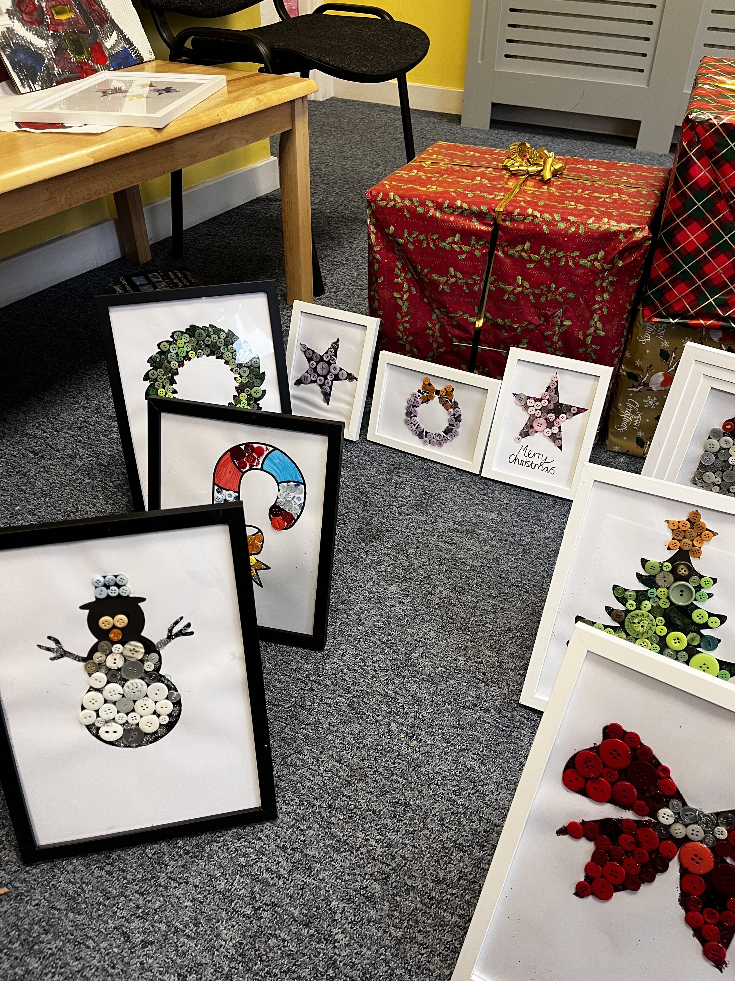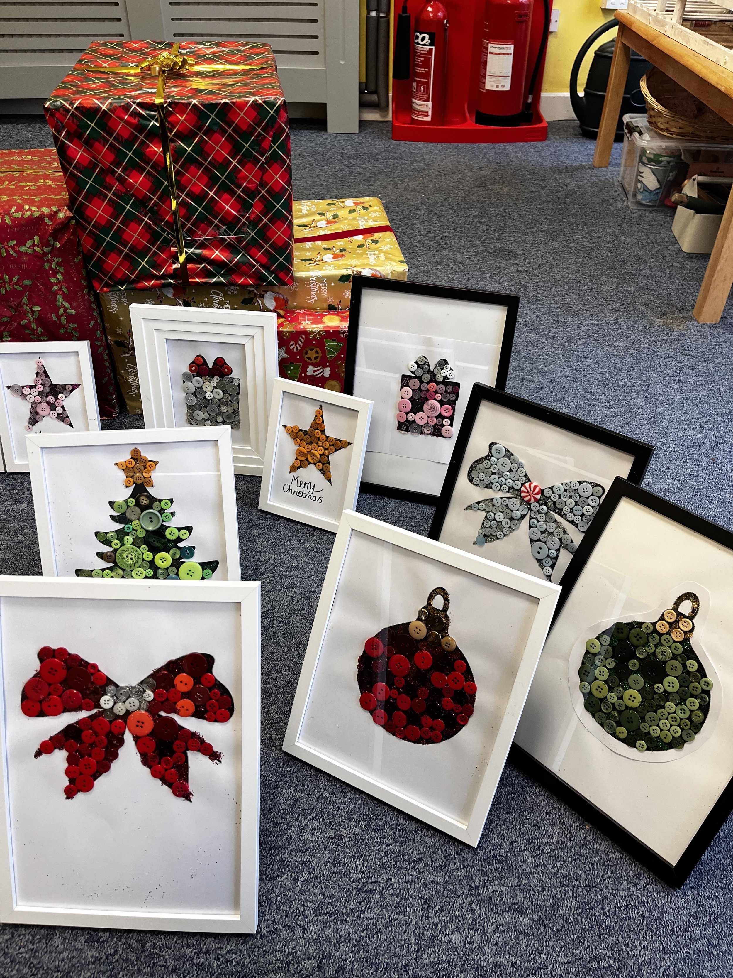 MC has also been busy making these christmas button art photoframes! they’re £4 each.